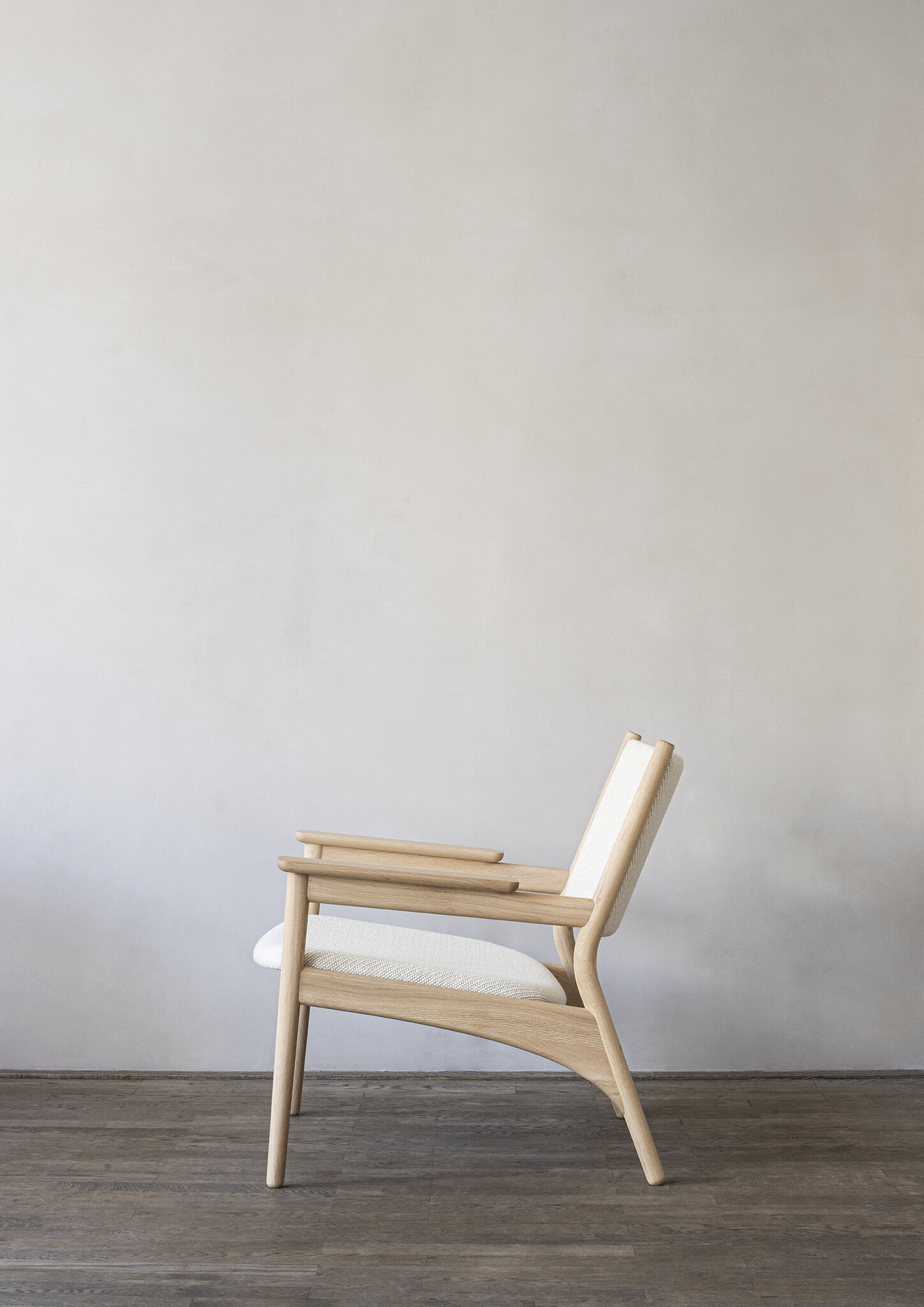 This lounge chair becomes a hybrid between the dining chair and sofa. By combining the wide armrest from the sofa with the sleek lines and transparent look of the dining chair, we've arrived at a sophisticated and functional piece of furniture that also carries references to the 50’s Scandinavian cabinet makers' traditions.